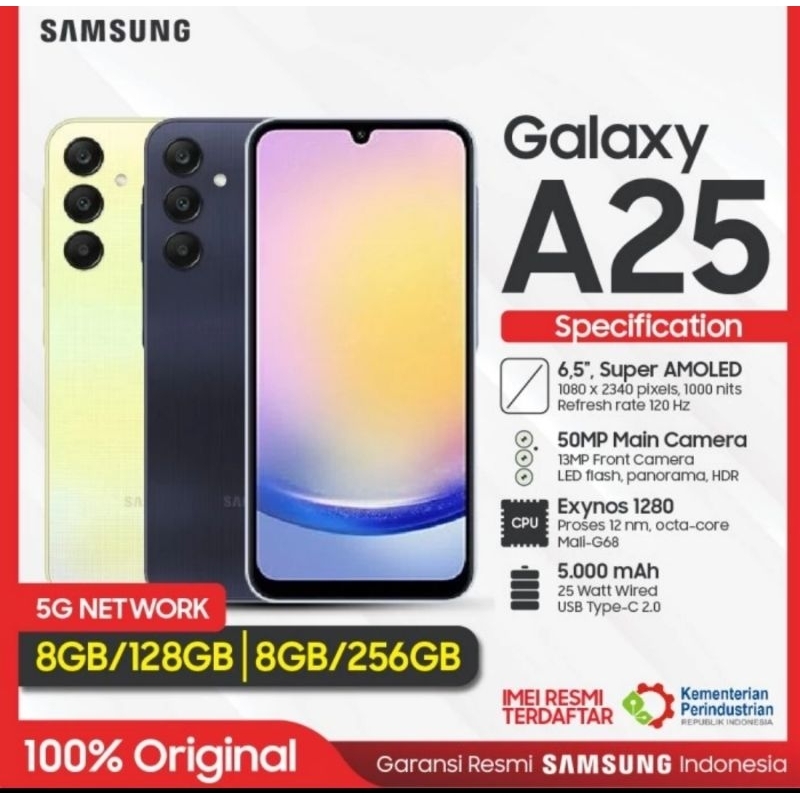 SAMSUNG GALAXY A25 5G ( RAM 8/128 DAN RAM 8/256 ) NEW SEGEL RESMI DI SELURUH INDONESIA
