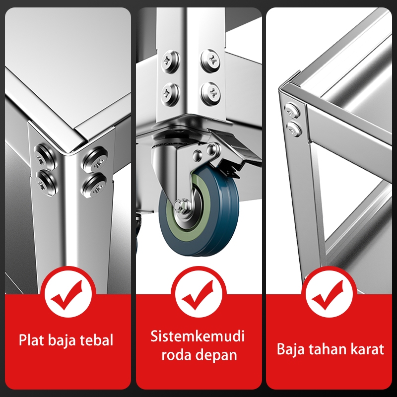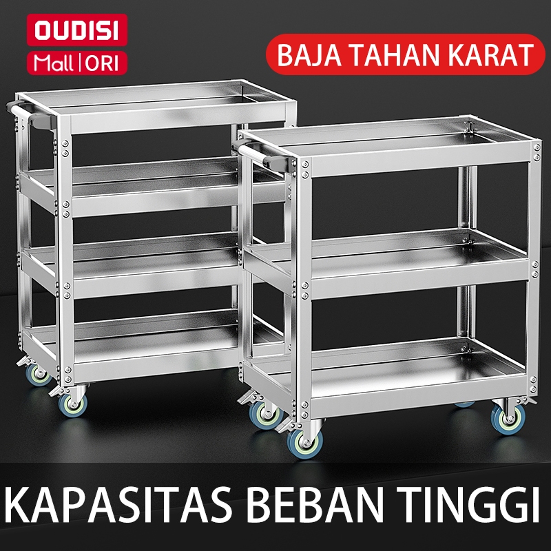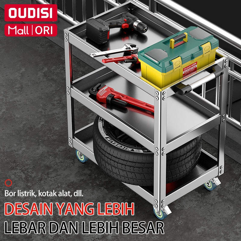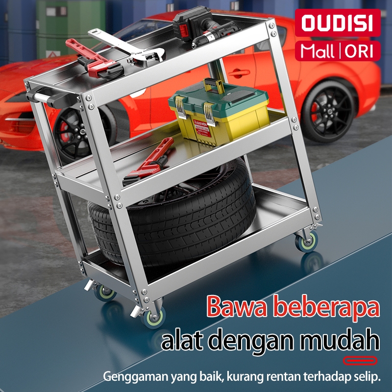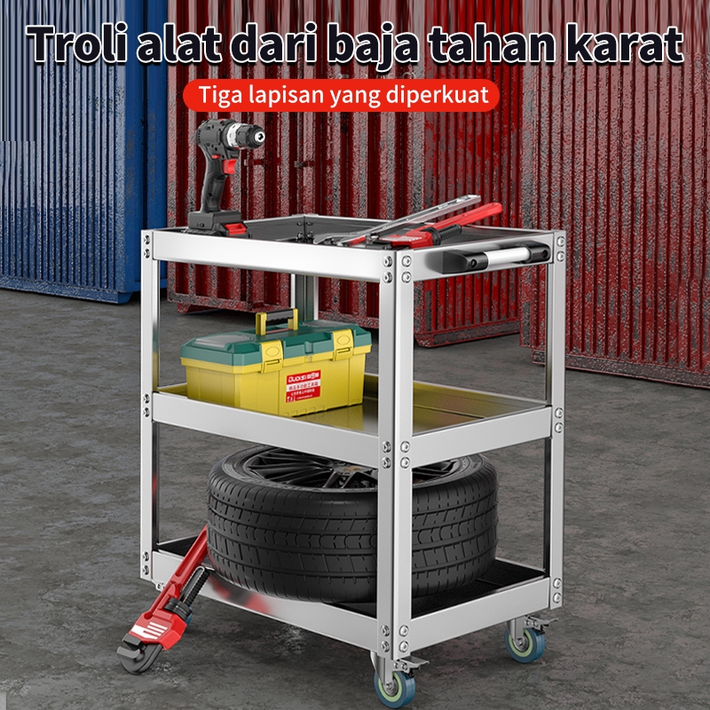 Troli Bengkel Rak 3 Susun Perkakas Trolly Trolley bantalan Kotak Peralatan Troli Dengan Peralatan Penyimpanan