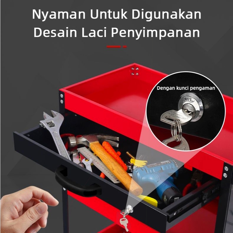 [Dengan Laci]Rak Perkakas/Troli Perkakas Bengkel Dengan Laci Troli Bengkel 3 Susun + Rak Perkakas Trolley Trolly Berkual