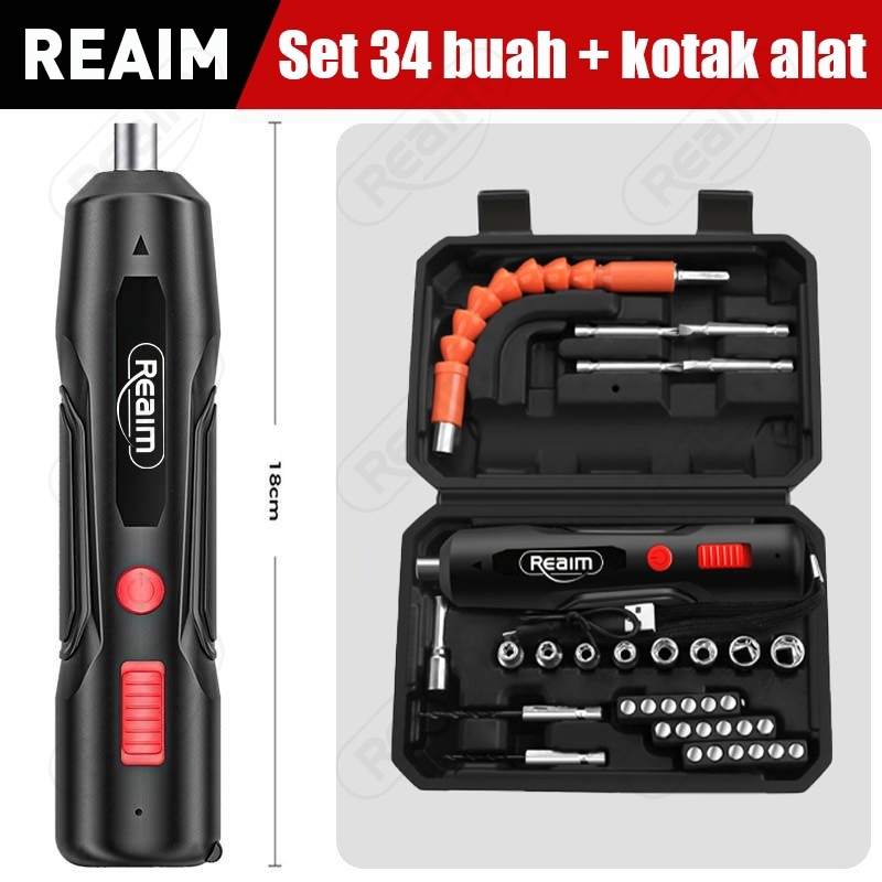 Cordless Screwdriver 4.2 VReaim Cordless Screwdriver 4.2 V 34 pcs Set Mesin bor Baterai Impact Cordless Drill Obeng List