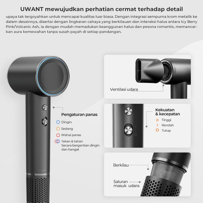 Uwant H100 High-Speed Hair Dryer Pengering Rambut Fast Drying 300 Juta Ion Negatif