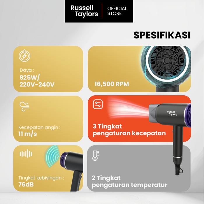 Russell Taylors HD2 Speed Hair Dryer 25000 rpm 2 mode pengering rambut Garansi Resmi 1 Tahun