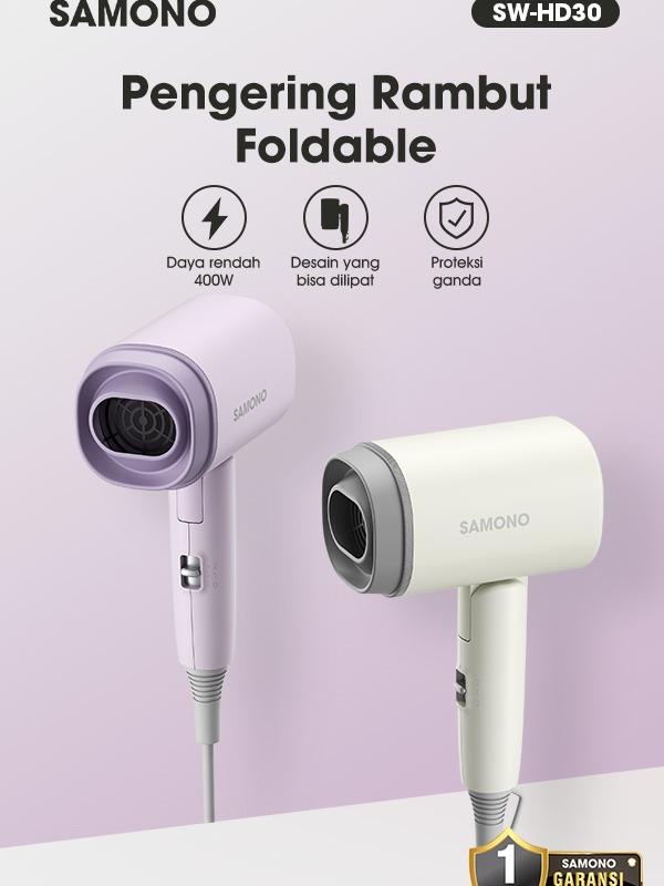 SAMONO SW-HD30 Hair Dryer 400W Hemat Daya Cepat Kering Travel Friendly Dapat Dilipat Proteksi Ganda