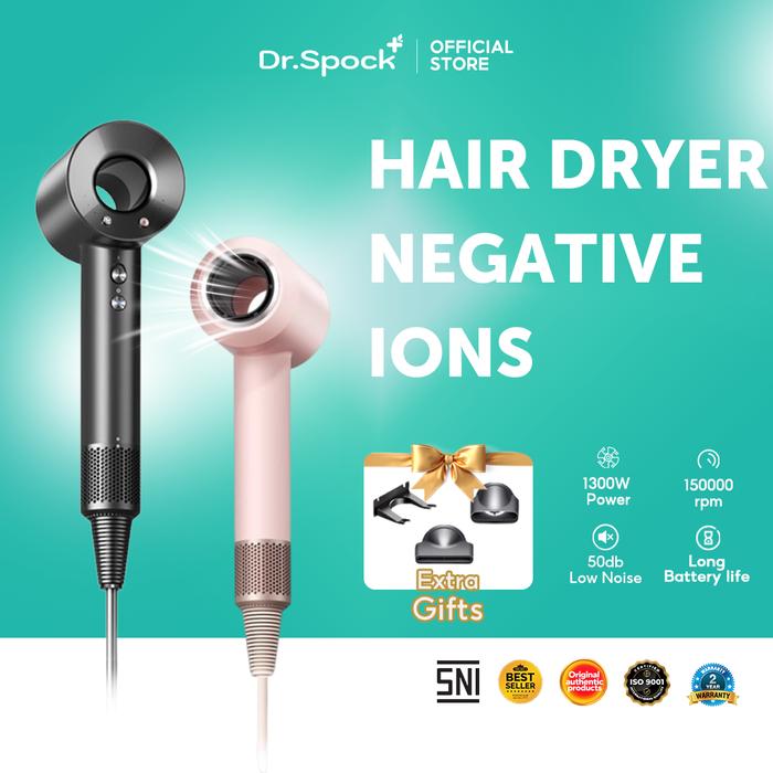 Dr.Spock Super Speed Hair Dryer 1300W Tourmaline Alat Pengering Rambut High Speed Turbo /