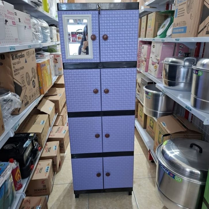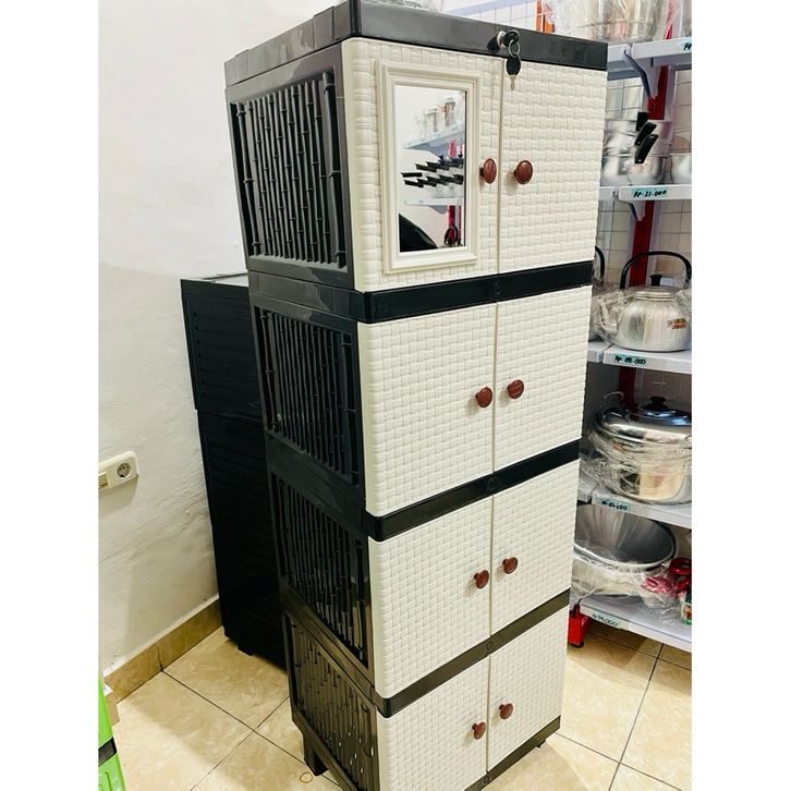 Lemari plastik susun 4/Lemari pakaian plastik kaca/Lemari galaxy motif bambu