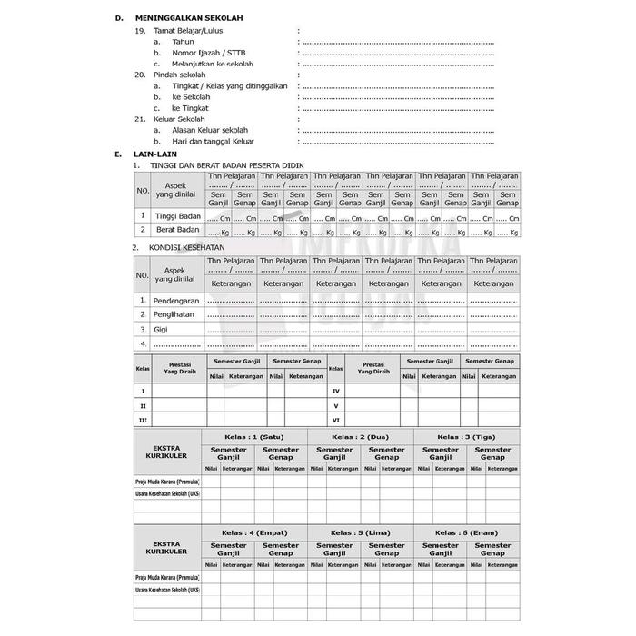 BUKU INDUK REGISTER KURIKULUM MERDEKA SD ISI 50 SISWA