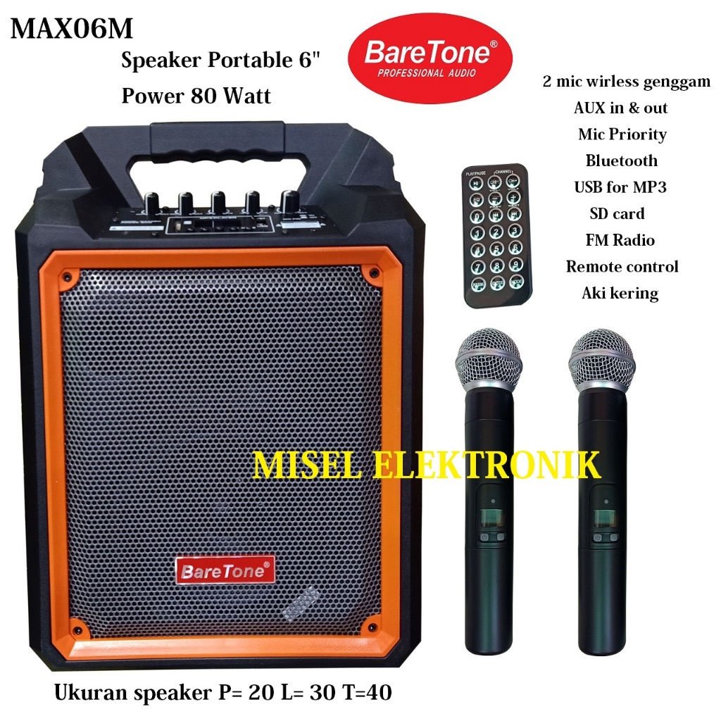 Speaker Portable 6 Inch Baretone MAX06M Bluetooth Original