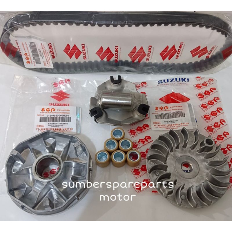 Paket CVT Van Belt + Rumah Roller Assy + Kipas Roller Suzuki Spin Skywave Skydrive