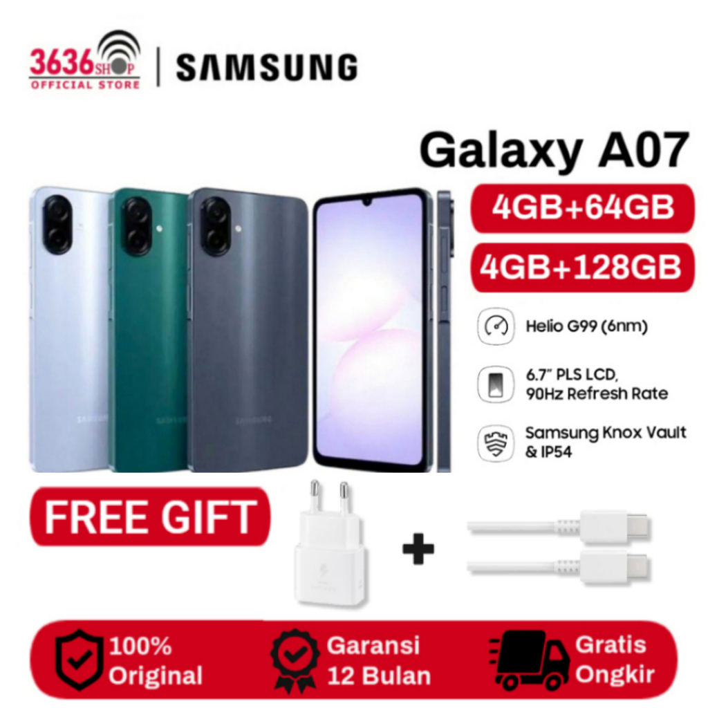Samsung Galaxy A07 [PLUS ADAPTOR] [4GB+64GB] [4GB+128GB] [6GB+128GB] - Mediatek Helio G99 - Camera 50MP - 5000mAh - Garansi resmi 1 Tahun