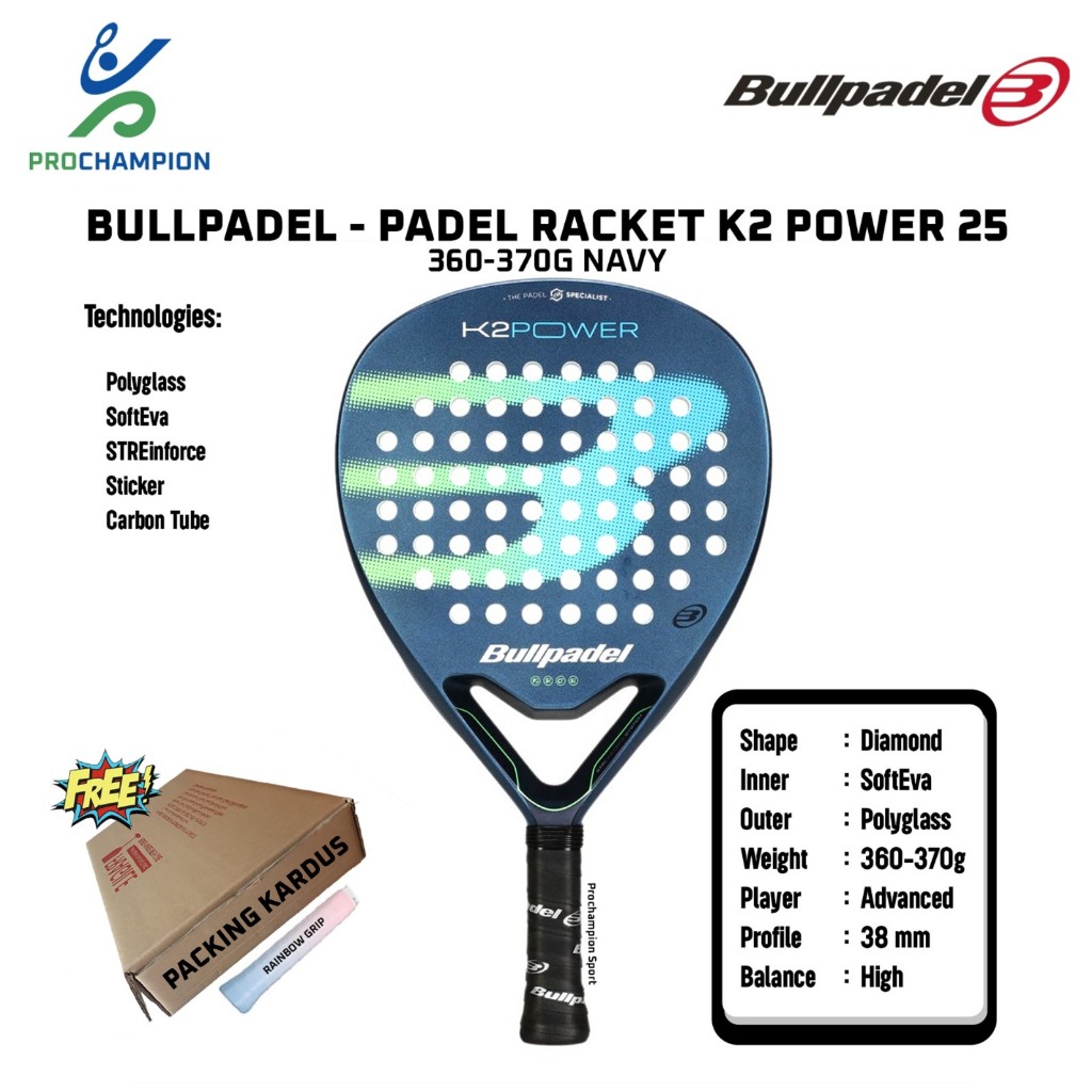 [Mall] RAKET PADEL BULLPADEL K2 POWER 25 360-370 G NAVY HEAD PADEL RACKET ORIGINAL TERBARU BEST SELLER VIRAL