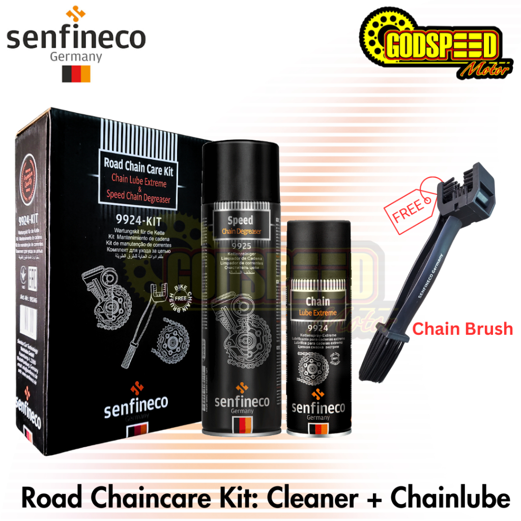 Senfineco Pelumas Rantai Chainlube Pembersih Chaincleaner Chain Lube Extreme + Speed Chain Degreaser Cleaner Brush Sikat
