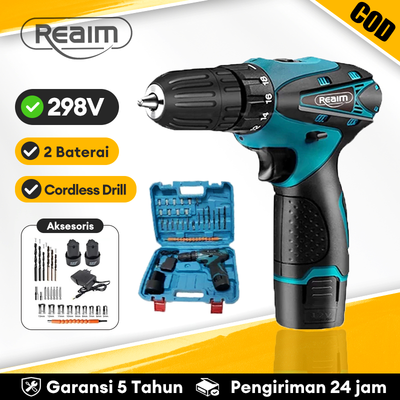 REAIM Mesin Bor Baterai Tangan/Bor Cordless Power Drills Kit/98V Dengan Cordless Impact Drill