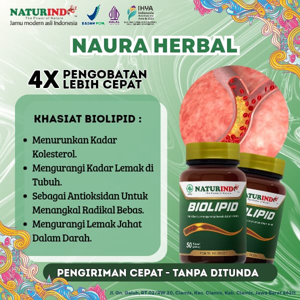 BIOLIPID Naturindo Obat Herbal Kolesterol Tinggi – Penurun LDL, Trigliserida & Lemak Darah, Alami Halal BPOM Aman