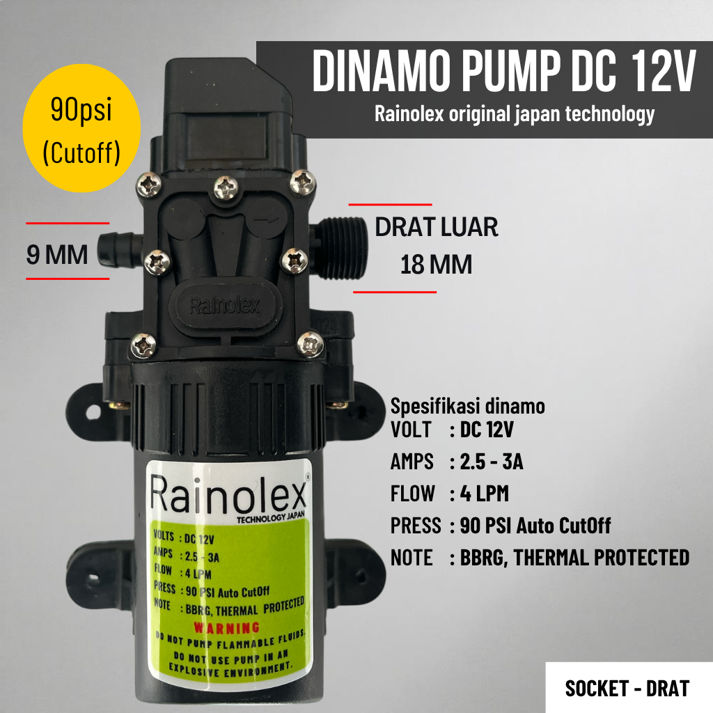 Paket Pompa Sprayer Elektrik Rainolex DC 12V 90 PSI ORIGINAL | Lengkap Stik 90cm + Potensio + 4 Nozel Semprot