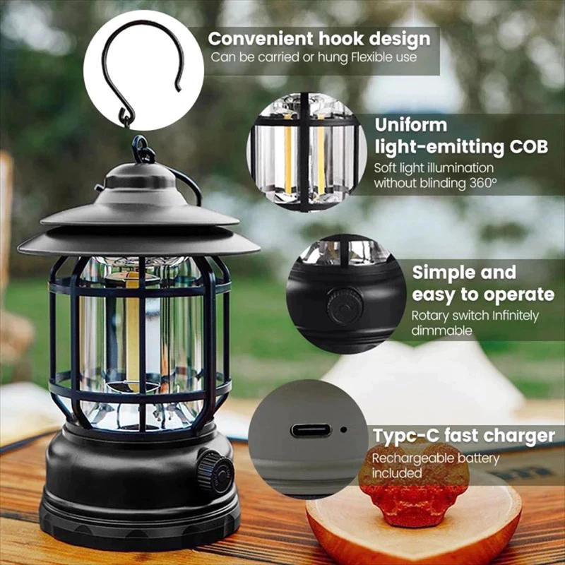 Lampu Lentera LED Lampu Camping Emergency Mudah Dibawa Lampu Kemah USB Batrai Lampu Tenda Camping
