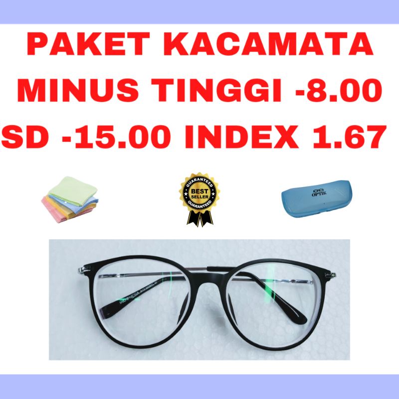 Kacamata Minus Tinggi – Lensa Tipis Index 1.67 (-8.00 s/d -15.00)