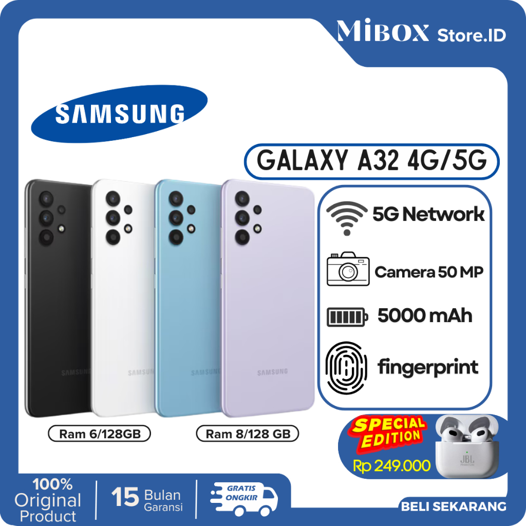 Samsung Galaxy A32 4G & 5G Fingerprint,Super AMOLED,5000 mAh Garansi Resmi Sein