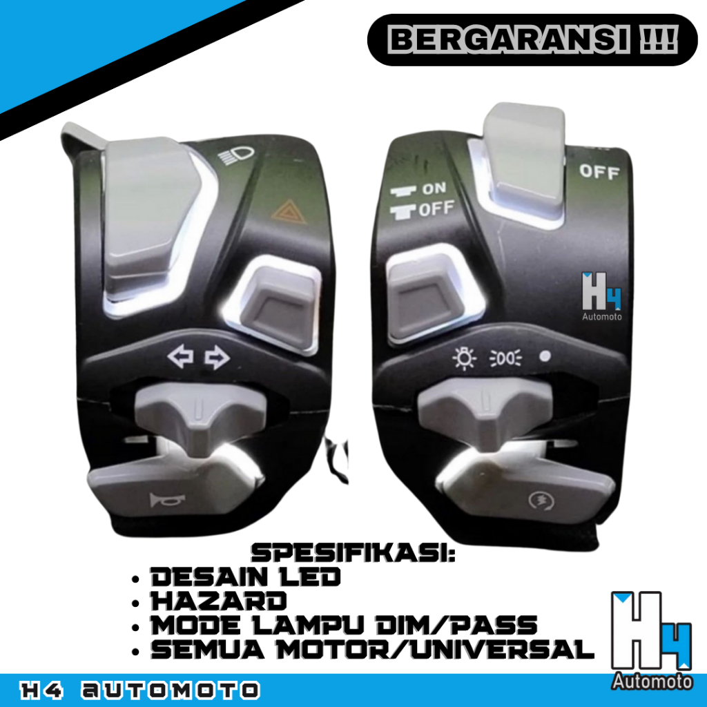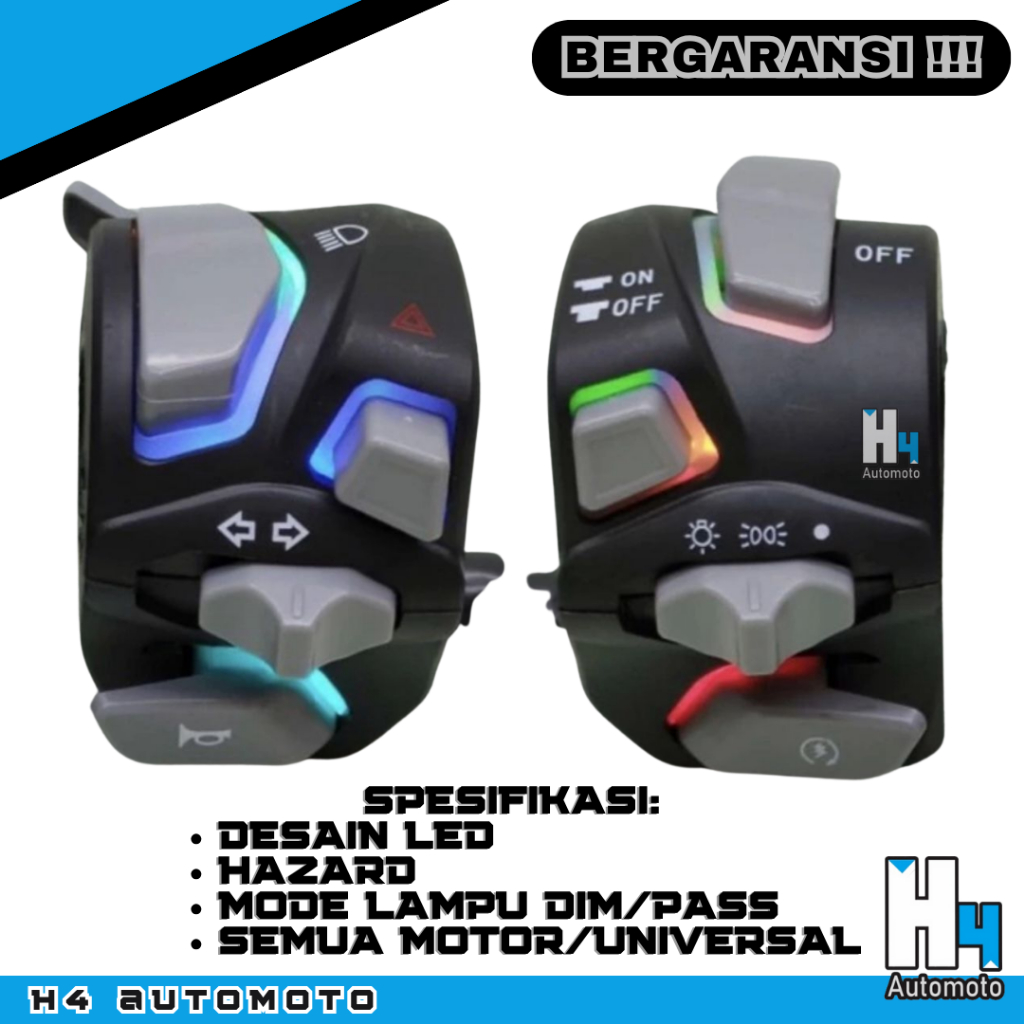 Saklar Holder SET Nyala LED Vietnam H4 Body Black Soket NMAX OLD dan Universal Nyala LED tersedia warna Biru Merah Putih