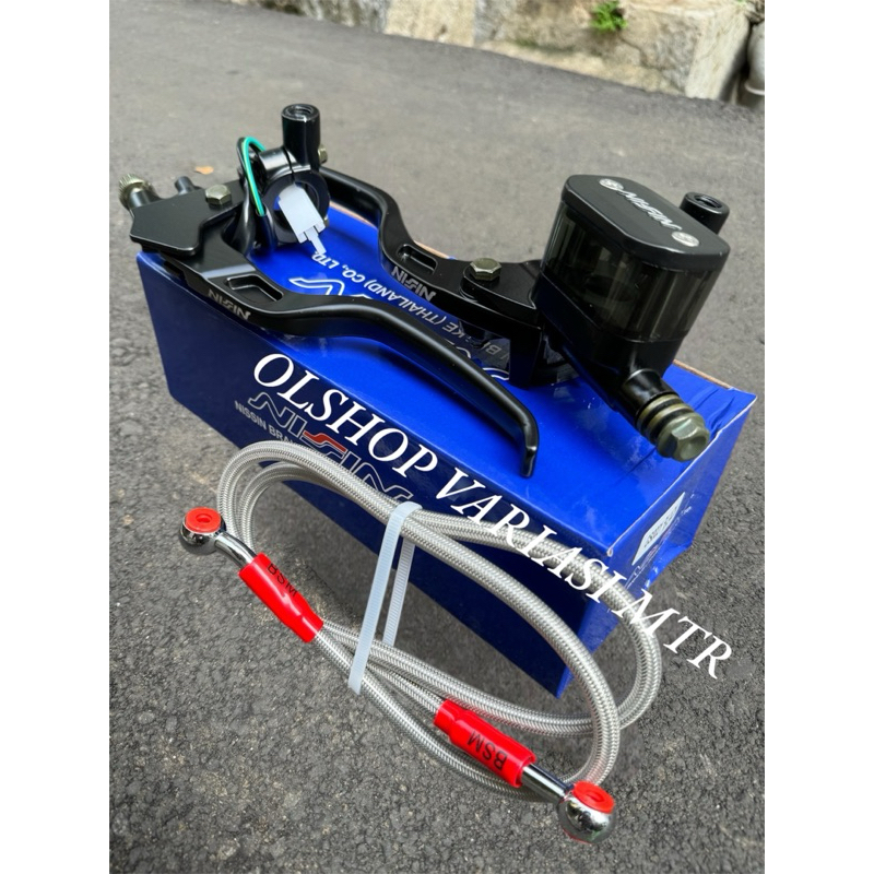 Handle rem master nizzin kotak model rcb sepasang set selang rem cakram 90-95cm semua motor