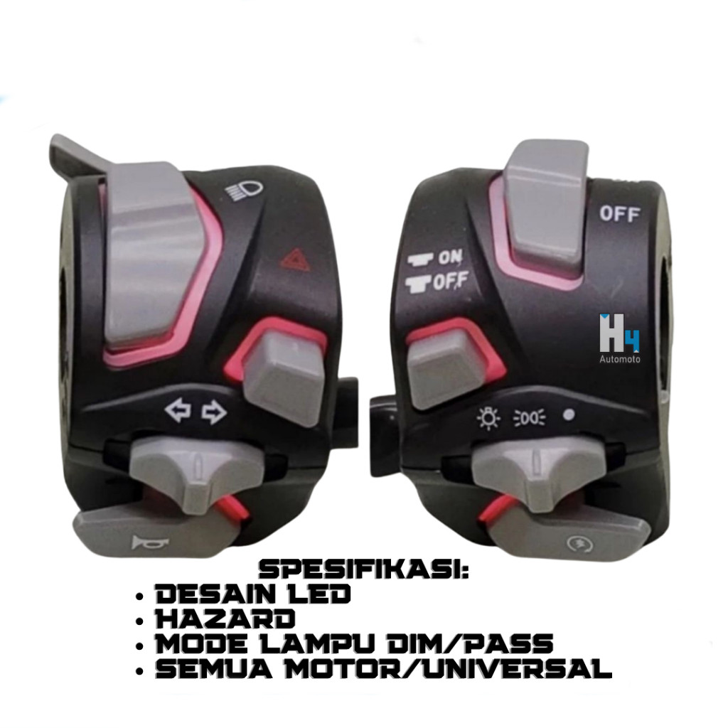 Saklar Holder SET Nyala LED Vietnam H4 Body Black Soket PNP NMAX OLD dan Universal Nyala LED tersedia warna Biru Merah P