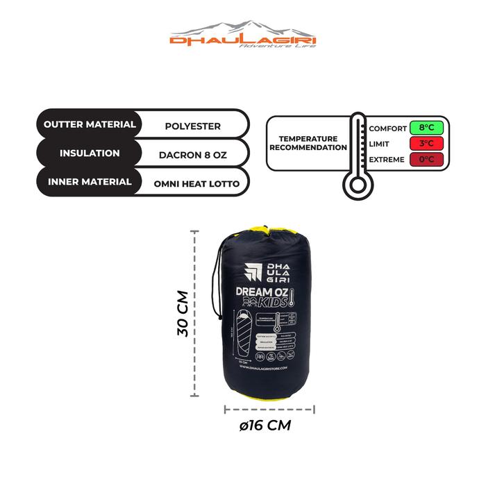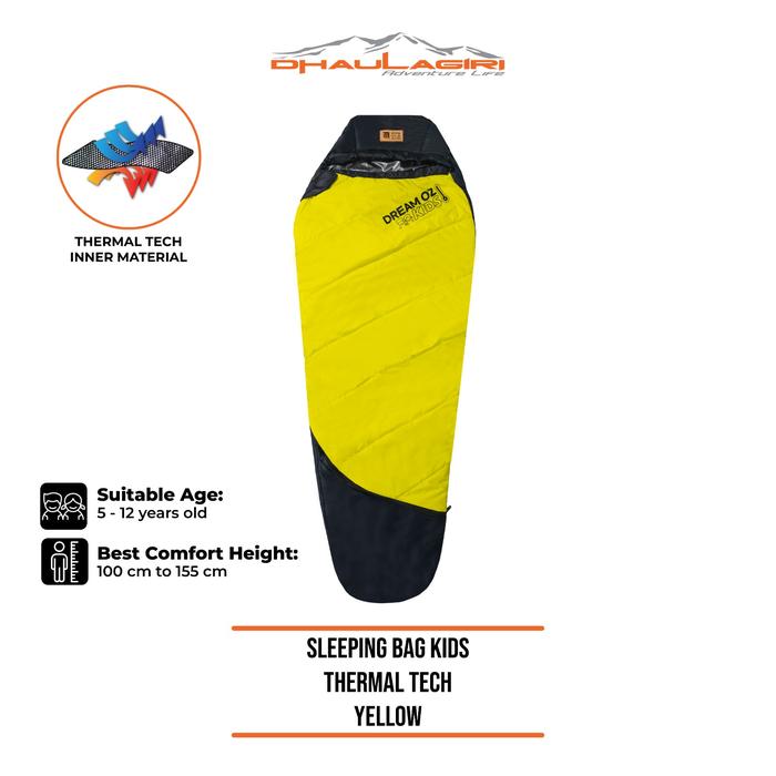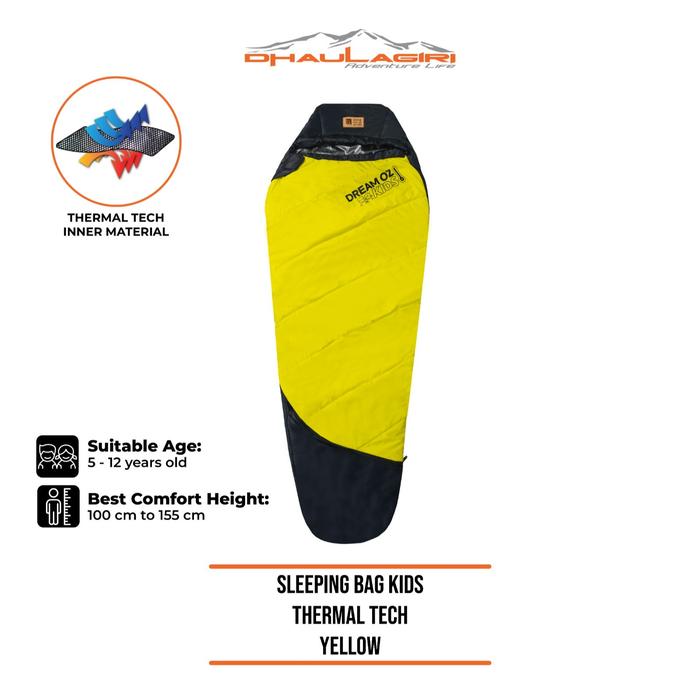Dhaulagiri Sleeping Bag Kids Thermal Tech Dacron 8 Oz/ Sleeping Bag Anak Usia 5 sampai 12 Tahun - Yellow