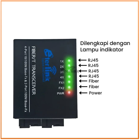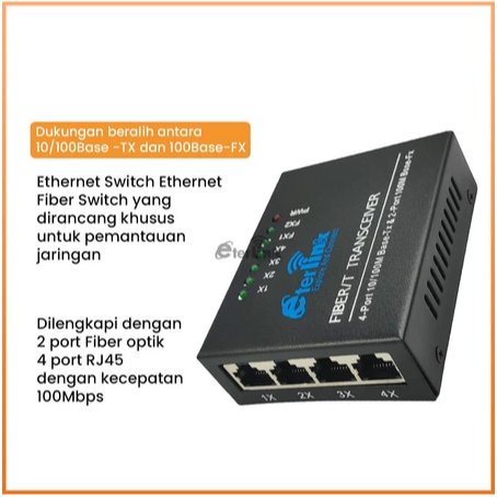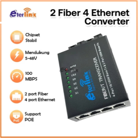 Support POE 100Mbps 2F4E Converter 4 RJ45 2 SC Ethernet Fiber Converter dengan adaptor 5V-12V power