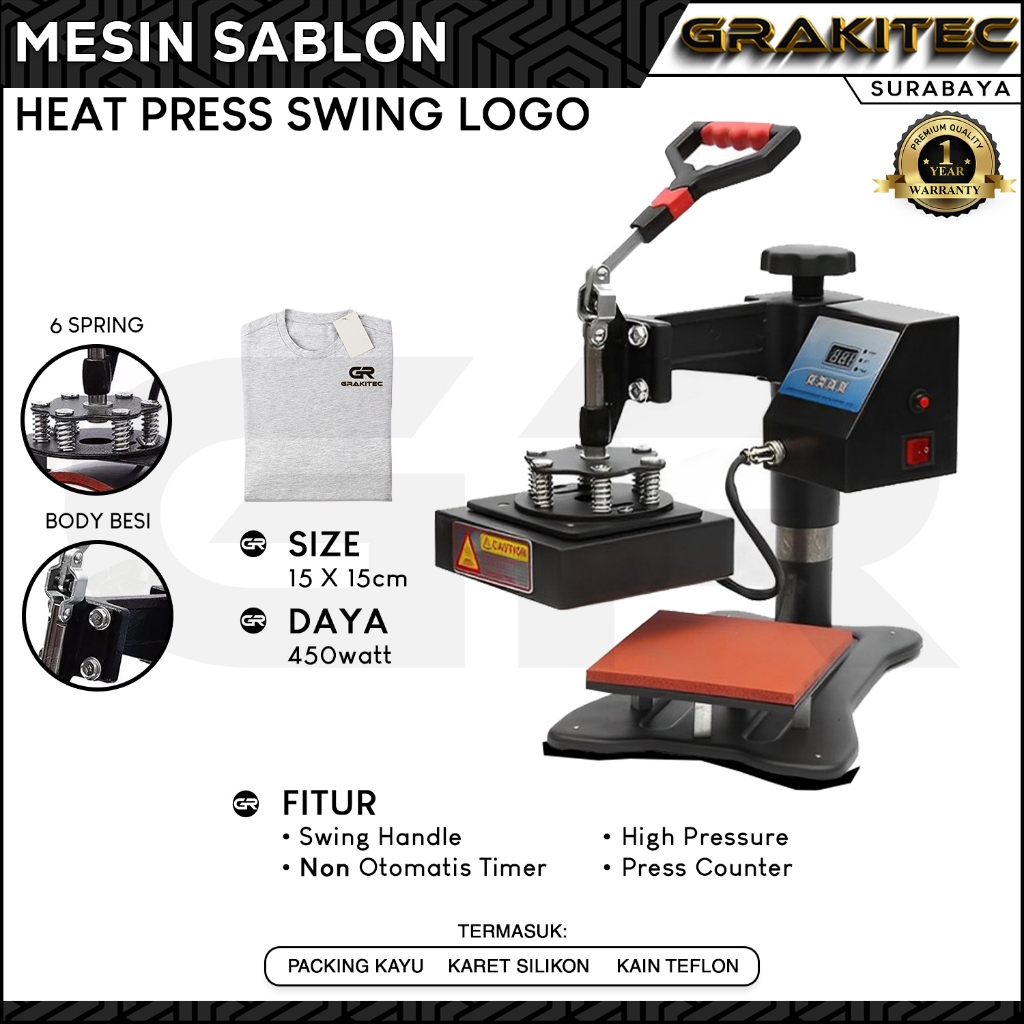 Mesin Press Sablon SWING Topi & Logo / 2in1 Mesin Sablon untuk Topi kaos, Logo, Label, Kerah Leher, Inside Tag, lengan,