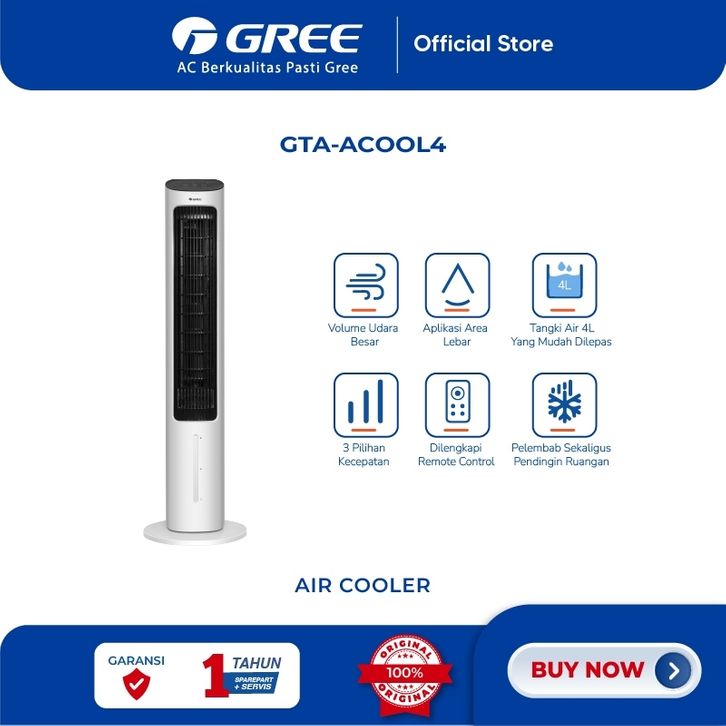 [Mall] Air Cooler Gree Dingin Terbaik Kipas Angin Berdiri Fan Stand Anion GTA-ACOOL4 AC Humidifier Tangki Mini Portable