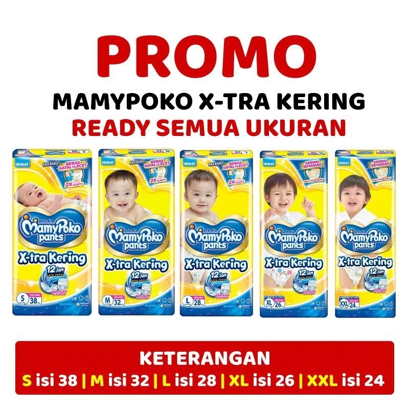 PAMPERS MAMYPOKO X-TRA KERING PAKET 2 1 BALL PANTS NBS44 S38 M32 L28 XL26 XXL24 POPOK CELANA PEMPES MAMY POKO TERMURAH