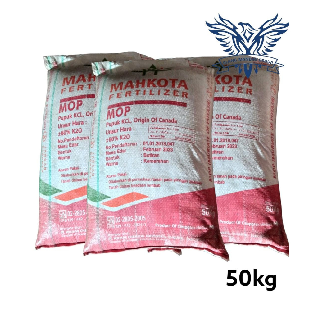 Karungan Pupuk Mahkota KCL MOP 50Kg K20 60 PERSEN Kan Pabrik Wilmar Chemical Indonesia