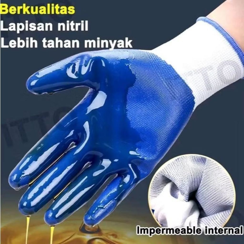 6 PASANG Sarung Tangan Kerja Proyek Anti Slip Tebal Kuat Safety Glove Premium Sarung Tangan Karet