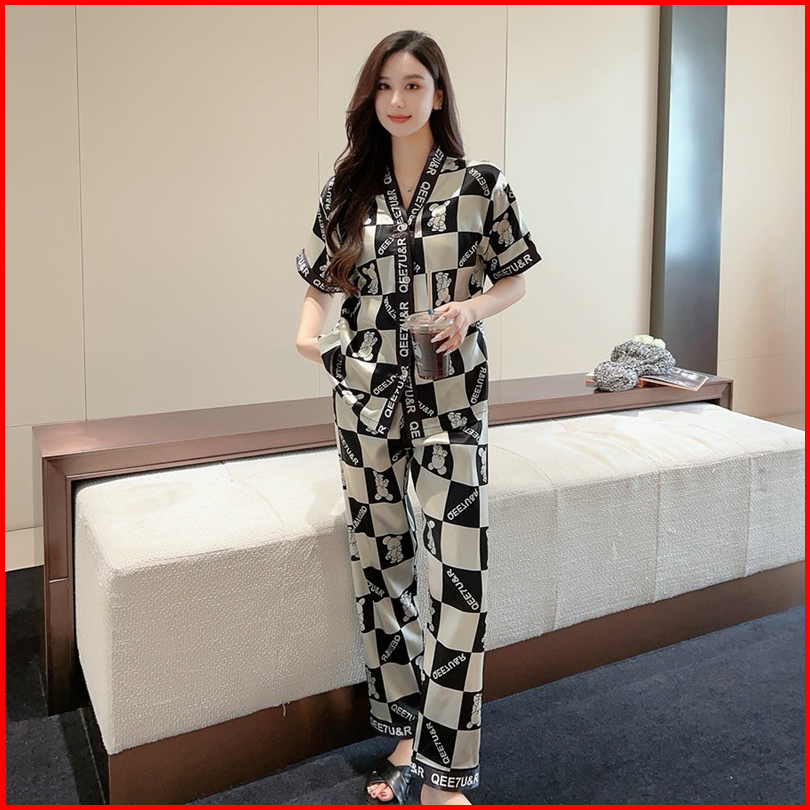 Baju Tidur Wanita Jasmine Fashion Id - Setelan Piyama Celana Panjang Satin Kekinian Pajamas Premium