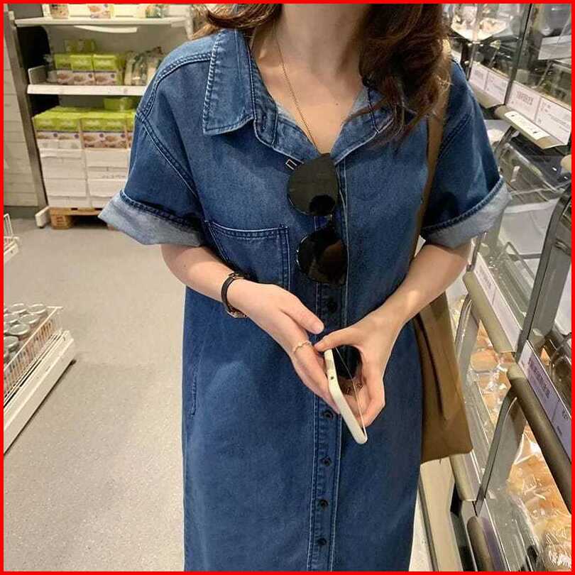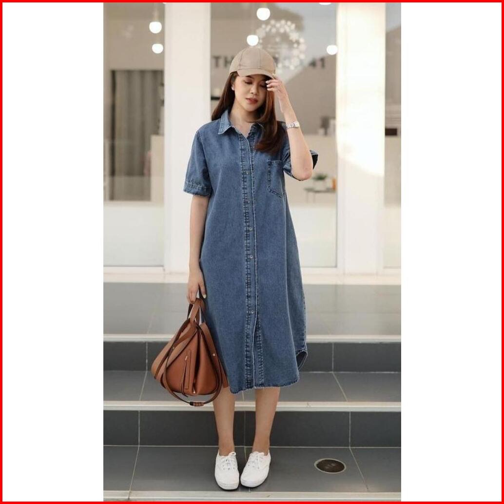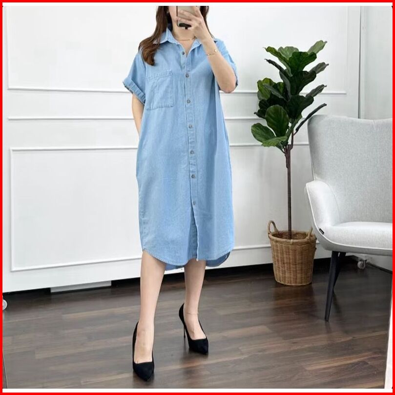 Nando Dress Denim Biru Dan Snow Denim Bahan Jeans Premium Lengan Pendek Kasual Simple Saku Satu 9081