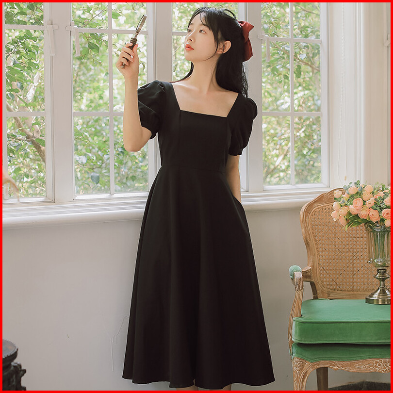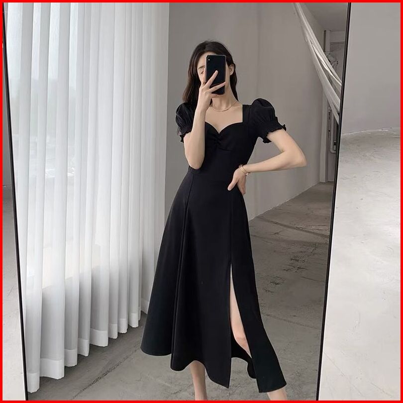 Miss Emita Baju Elegant Party Dress Midi Hitam Lengan Pendek Wanita Korean Style Dress Terbaru 2025 Import Kekinian Leba