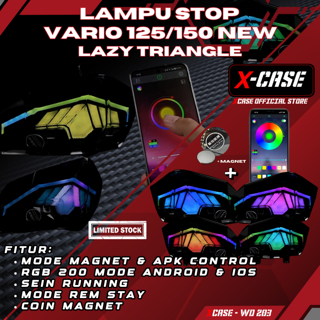 X-Case Lampu Stop Vario 125 150 Lazy Triangle Rgb Apk Plus Magnet Control New Sein Running WD 203