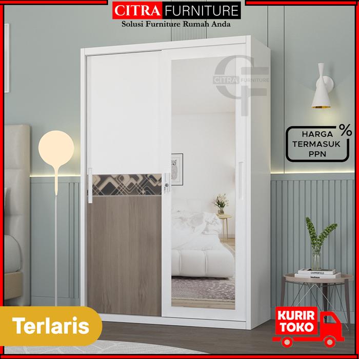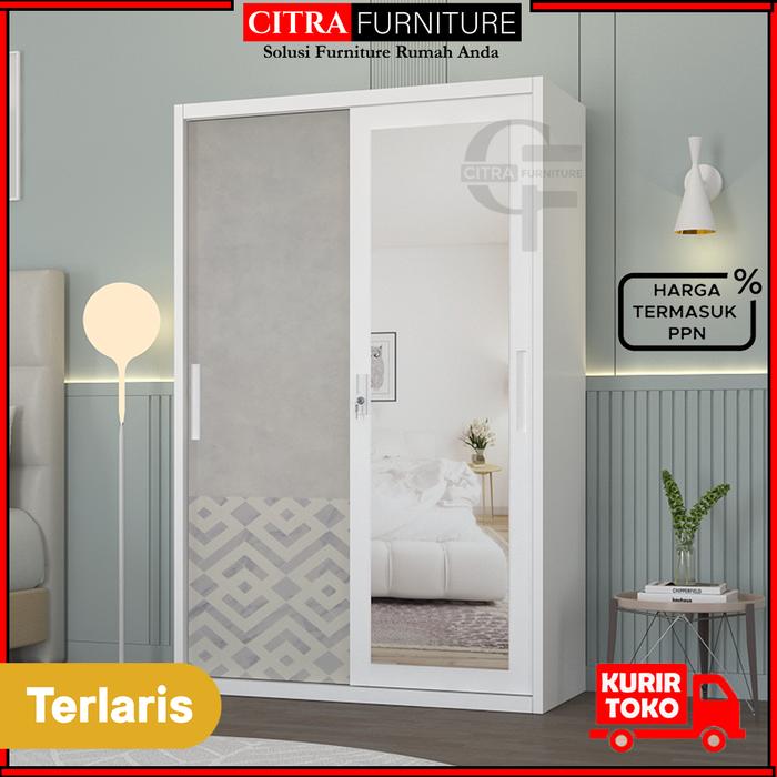 LEMARI PAKAIAN BESI 2 PINTU SLIDING JUMBO CERMIN|LP BAJU SLEDING KACA - MOTIF-I, DIRAKIT