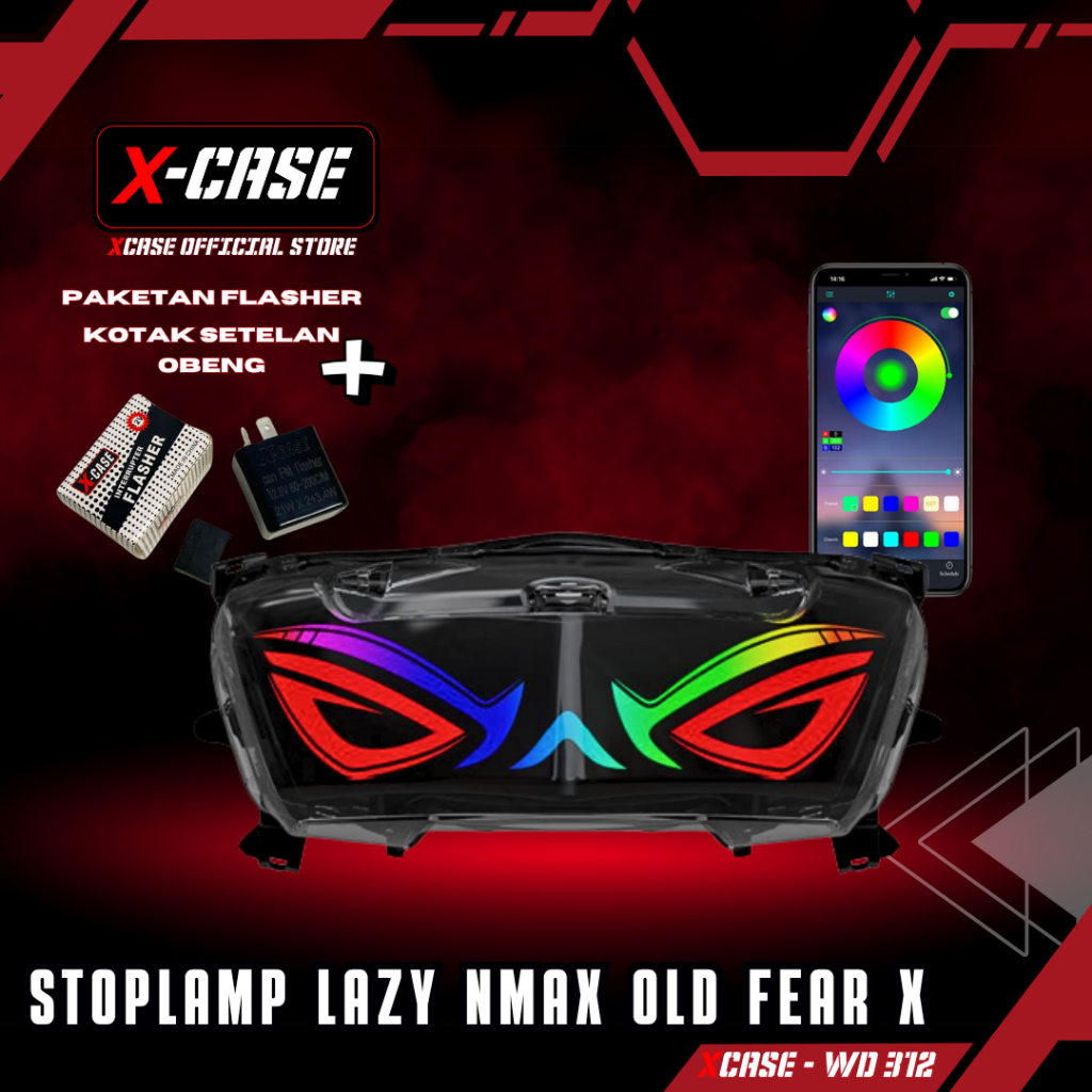 X-Case Lampu Stoplamp Nmax Old Lazy Frame 200 Mode ApK Android Ios Tombol Click Running RGB WD 224