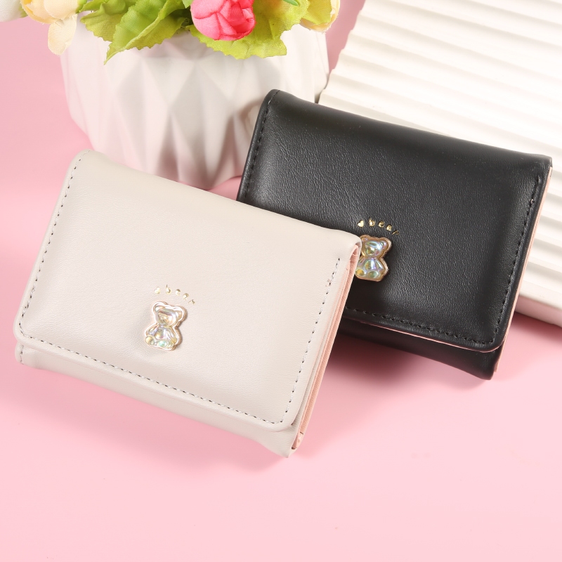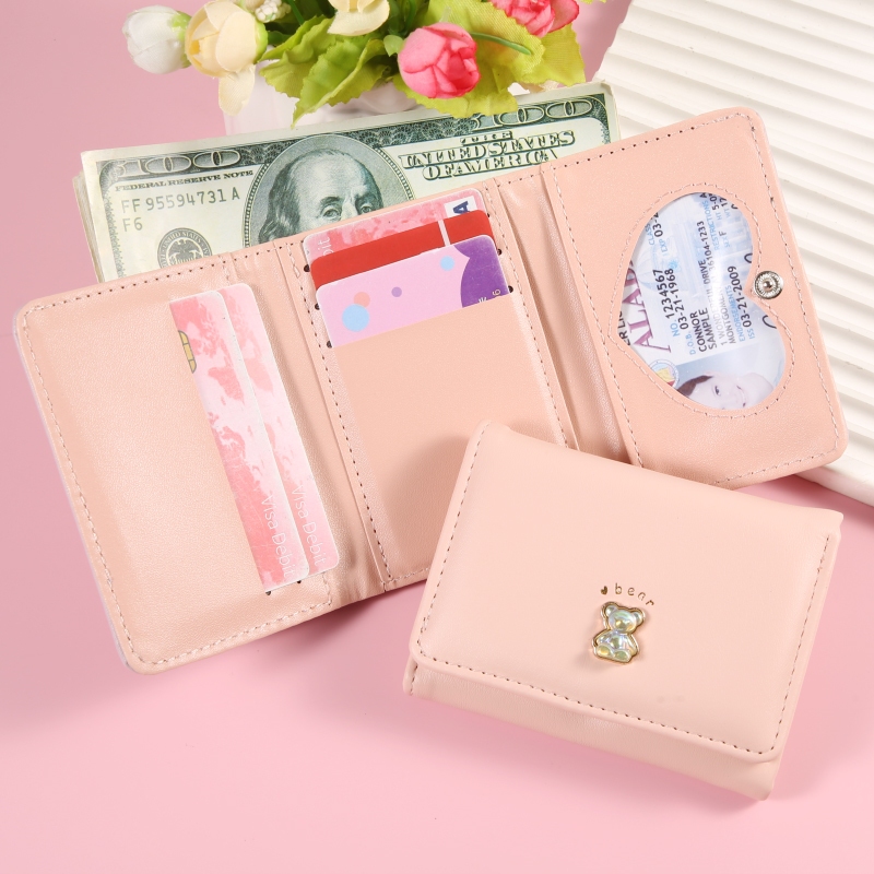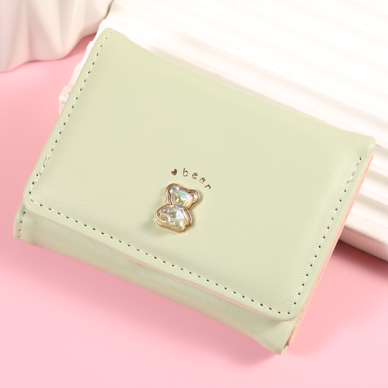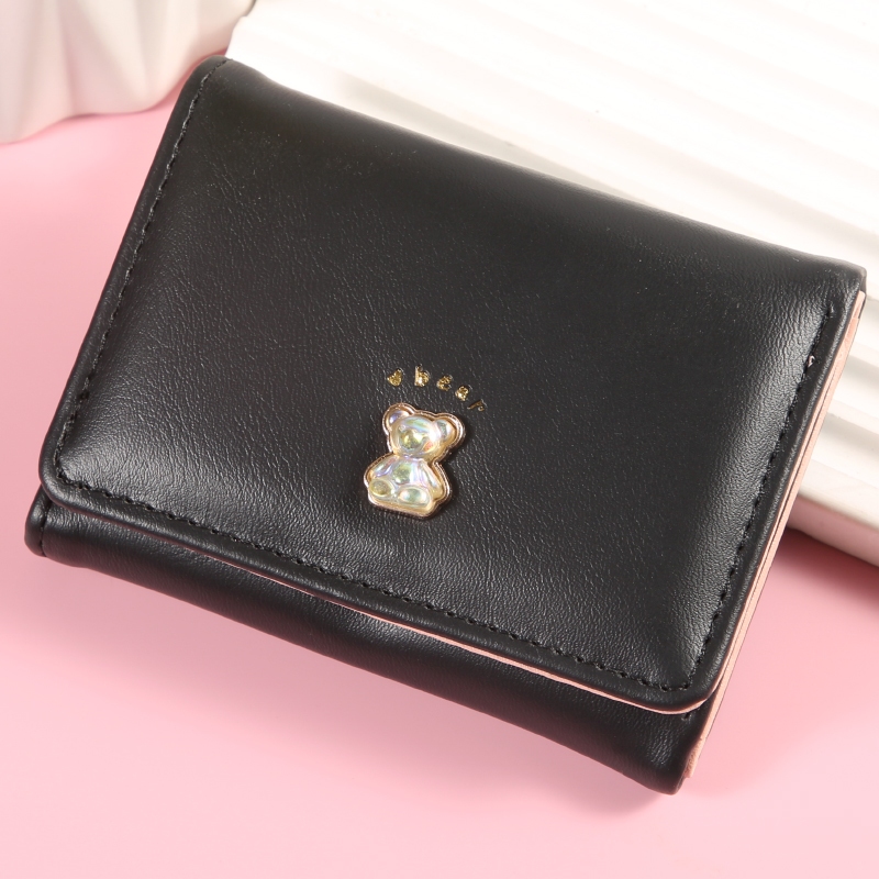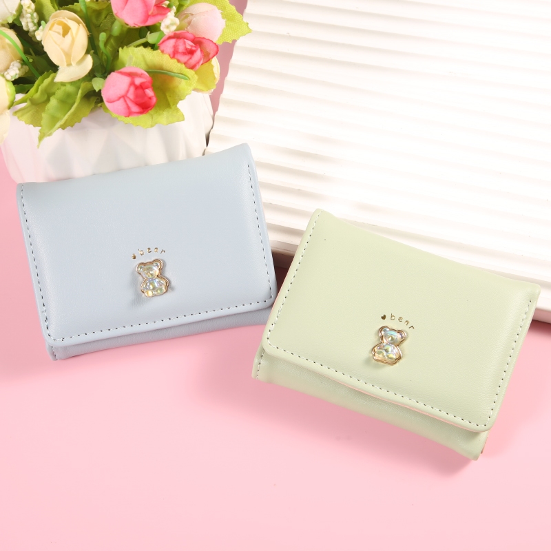 Dompet Lipat Wanita Bear Diamond Premium Style Kartu Kulit PU