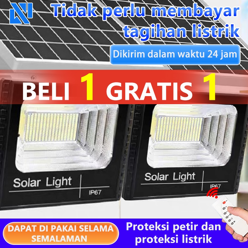 Lalaku【Garansi 10 tahun】 Lampu Tenaga Surya Outdoor Lampu Solar cell Lampu Super terang 1000W Dengan Panel Surya Otomatis sorot emergency led Beli 1 Gratis 1