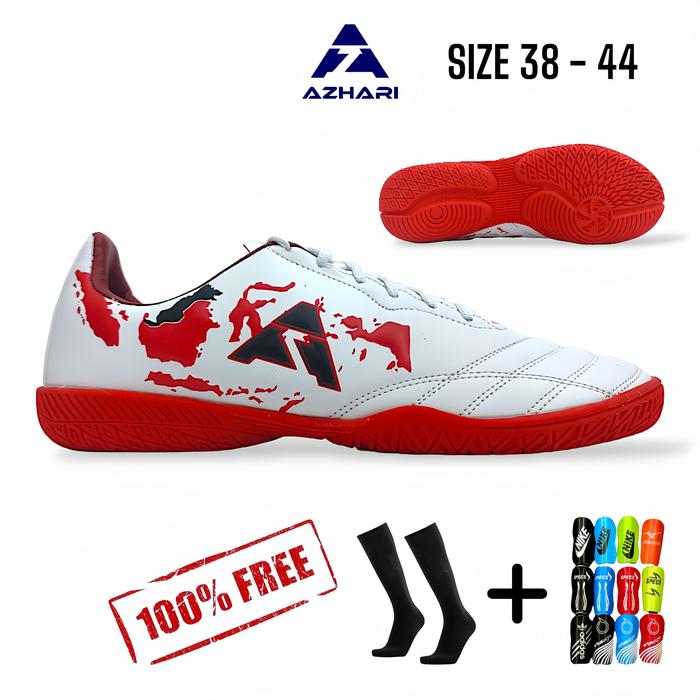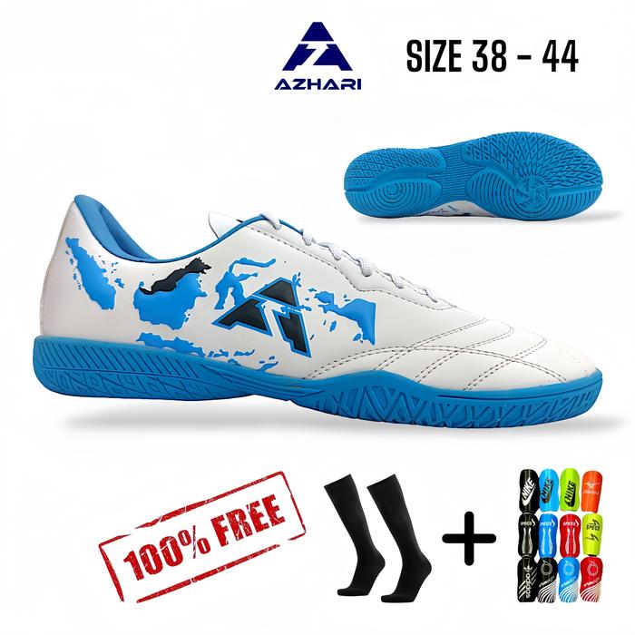 Sepatu Futsal Putsal Mini Soccer Azhafi Diversity IN Putih Biru Sol Gerigi Original Bonus Kaos Kaki