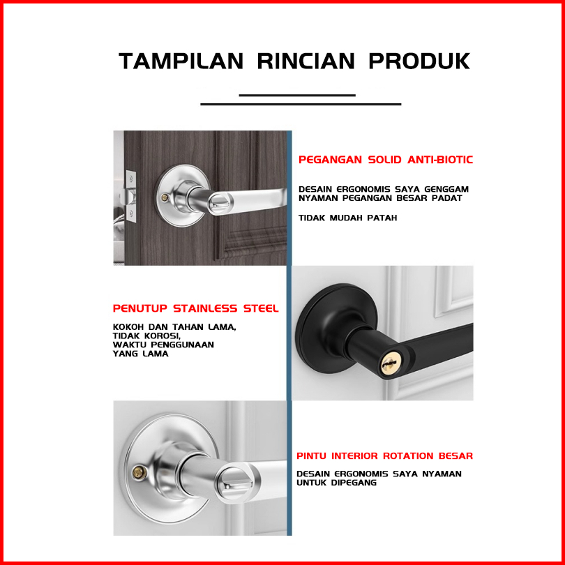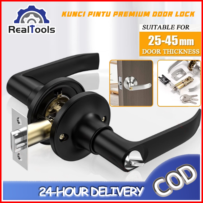 Realtools Handle Pintu Hitam Set Gagang Pintu Rumah Minimalis Komplit Kunci Pintu Premium Door Lock