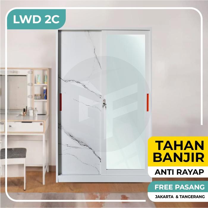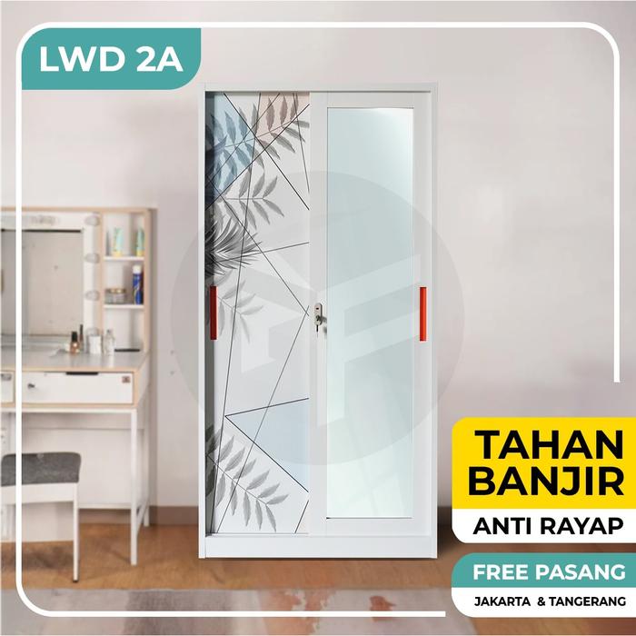 LEMARI PAKAIAN BESI 2 PINTU LEMARI SLIDING LEMARI BESI LEMARI KACA LEMARI BAJU METAL LWD & LWS - LWD 2A, KAYU LUAR KOTA