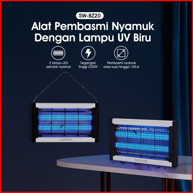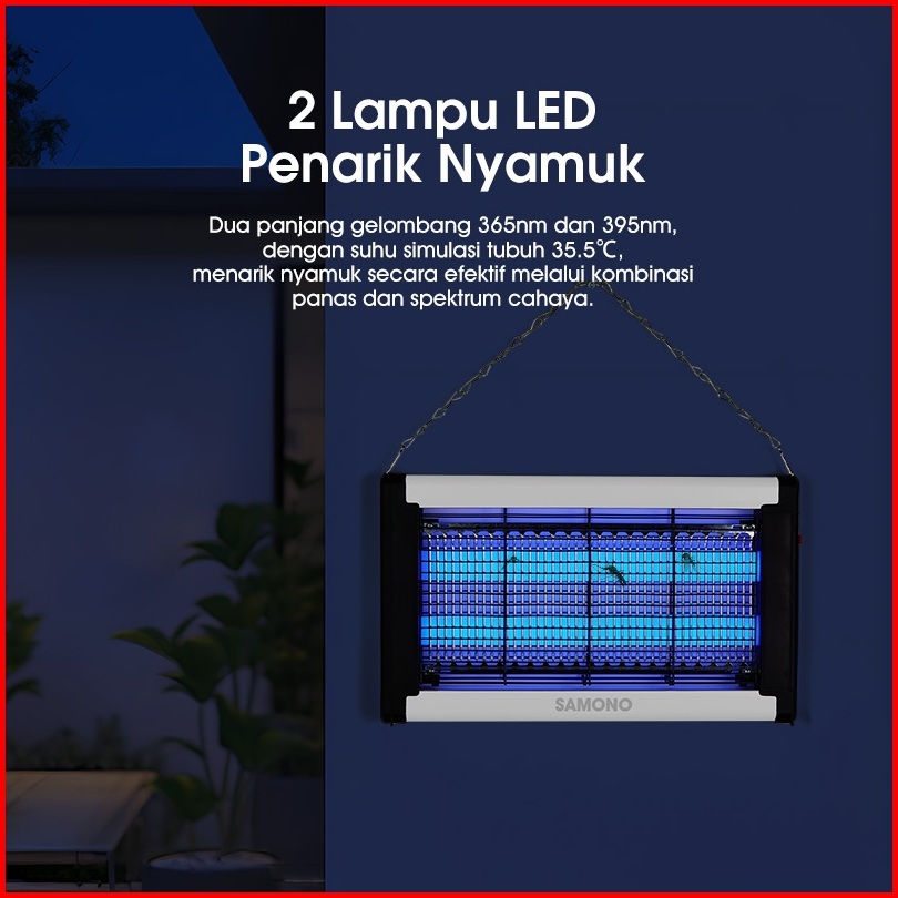 Samono Perangkap Nyamuk Serangga Blue Light 2 Lampu Led Penarik Nyamuk Tegangan 2300v Cakupan Area Up To 100m Sw-bz20 Ga