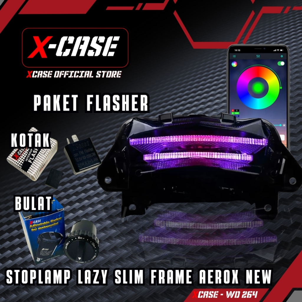 X-Case Lampu Stop Aerox New Lazy Slim Frame Audi 200 Mode App Tombol Click Running WD 264
