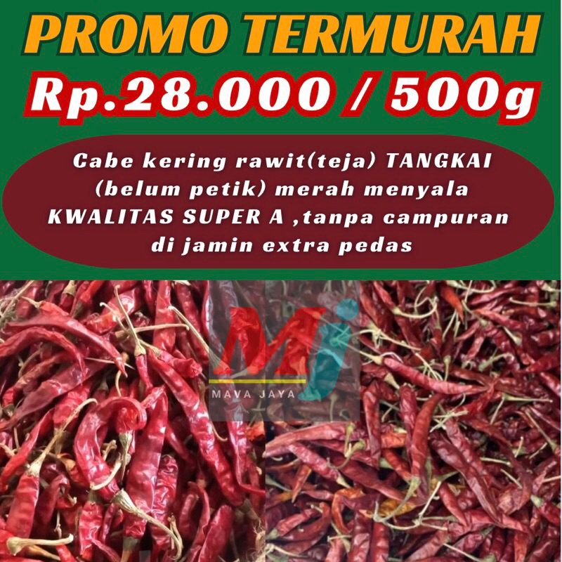 cabe rawit(teja/500g)TANGKAI/cabai kering teja ASLI extra pedas/ cabe teja kering /dengan tangkai/kwalitas super