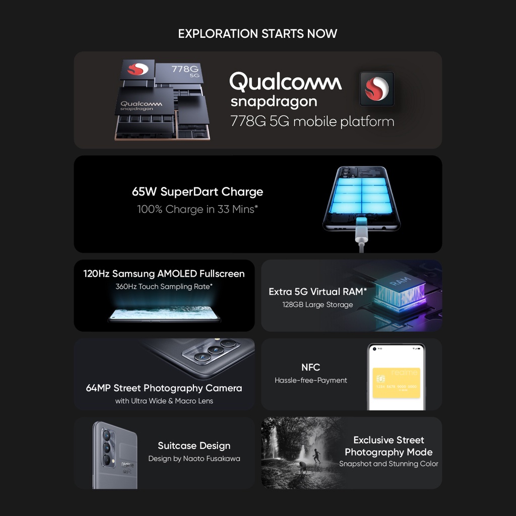 REALME OFFICIAL STORE Hp realme GT Master Edition 8/128GB [SD 778G 5G Processor, 120Hz hp realme terbaru