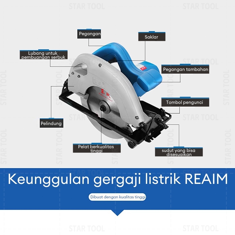 REAIM Circular Saw 7.5 inch Gergaji Multifungsi Circular Saw 1400W Mesin Gergaji Mesin Potong