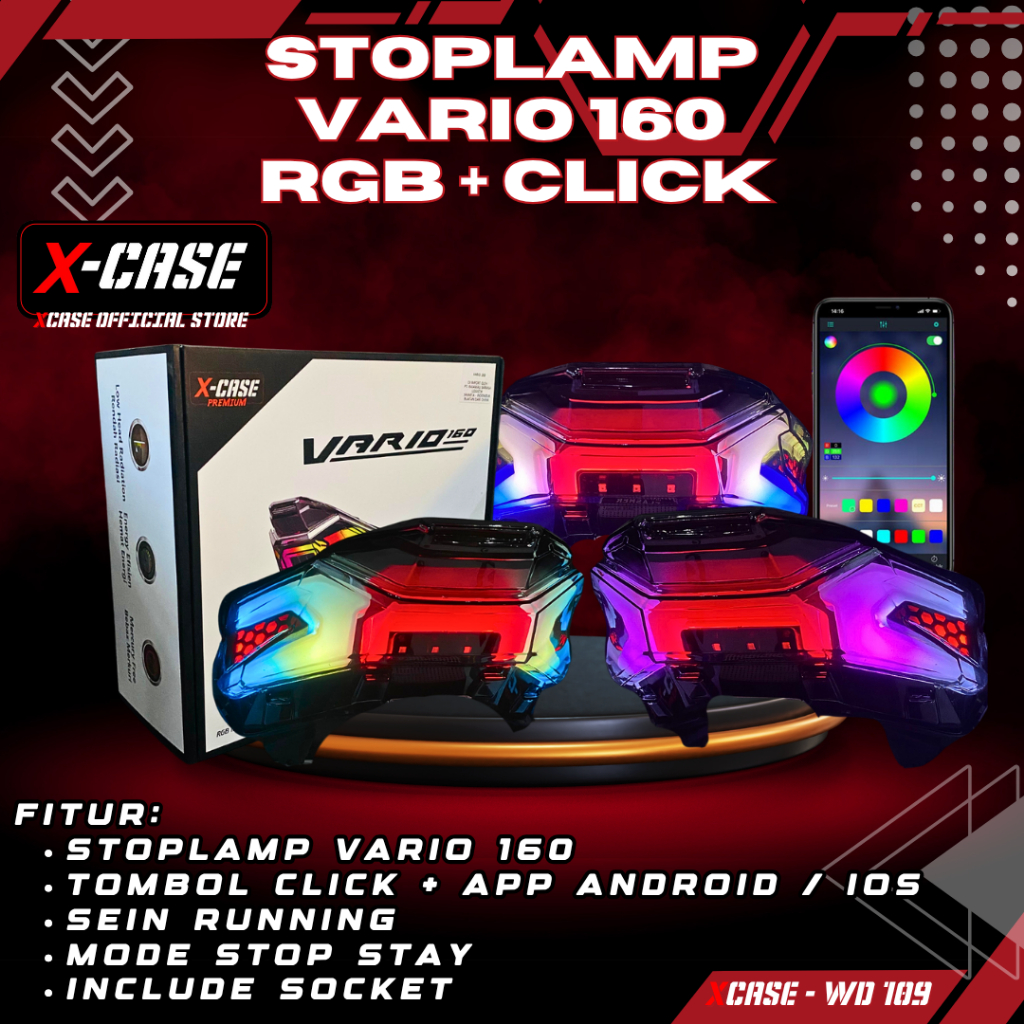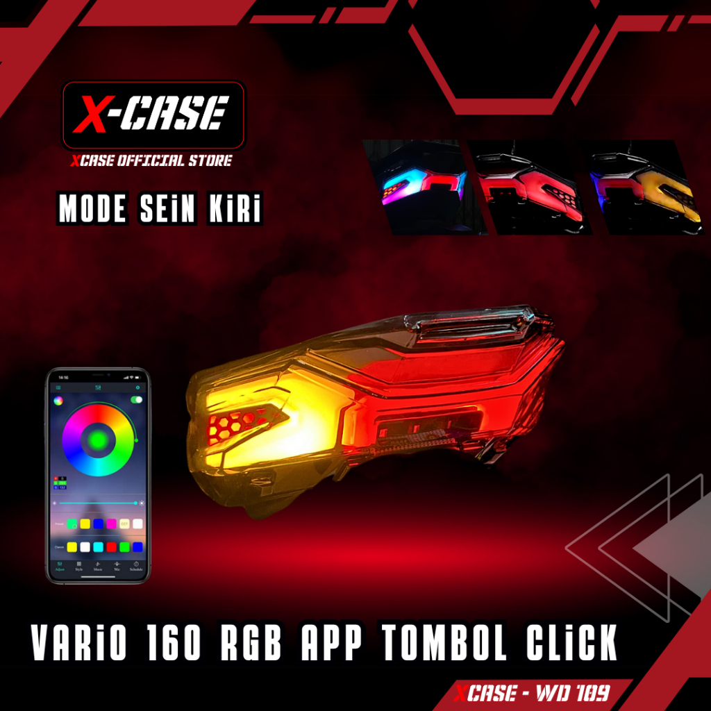 X-Case Lampu Stop Vario 160 CBS ISS Lazy Rgb Tombol Click Plus App Android / Ios 200 Mode WD 109
