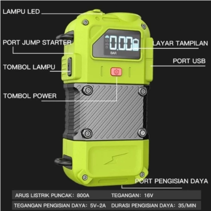 charger aki zper otomotif pompa udara digital 16 volt jumper aki mobil pompa ban mobil elektrik portable