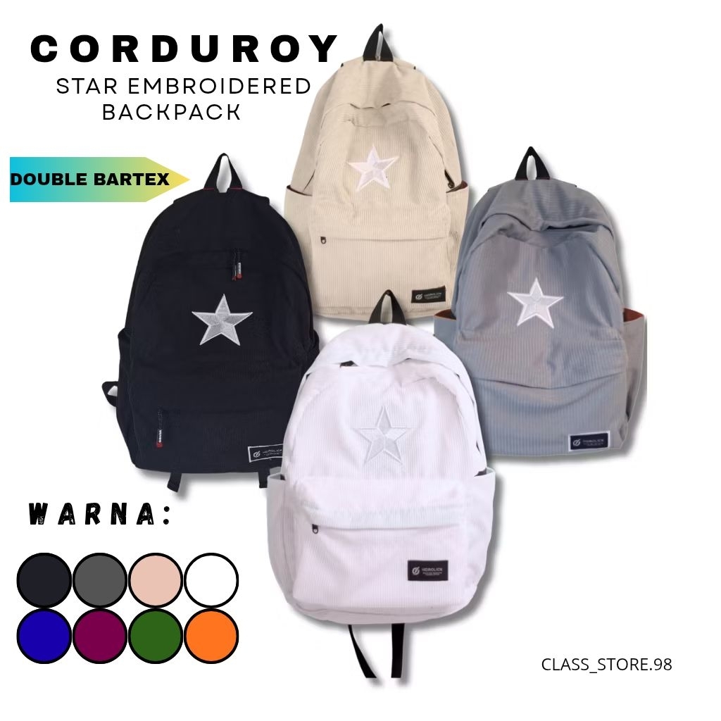 Tas Ransel Backpack Corduroy/uroy Bintang Sekolah & Kuliah Pria Wanita Terbaru Jahitan Double Bartex